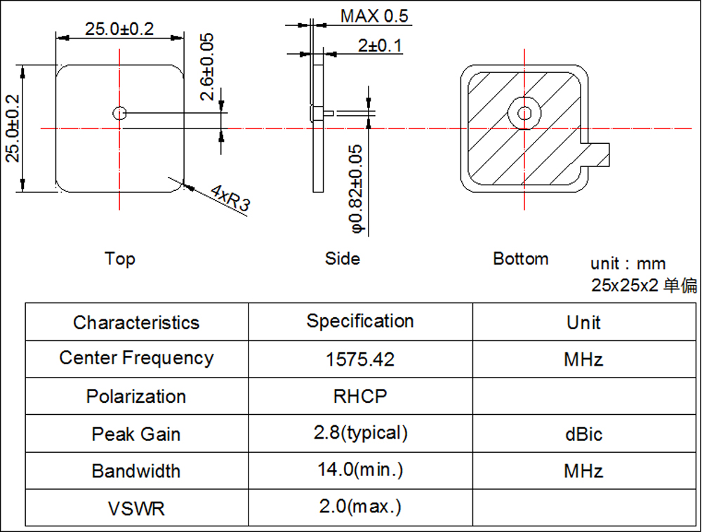 25x25x2 陶瓷天線